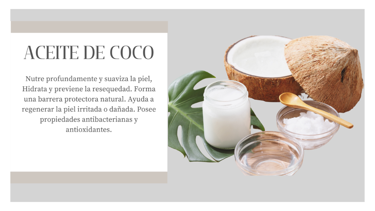 Rica en ácidos grasos (como el láurico y caprílico), que penetran en las capas más profundas de la piel, restaurando su barrera lipídica y evitando la pérdida de humedad. Calma irritaciones y reduce la descamación en pieles extremadamente secas
